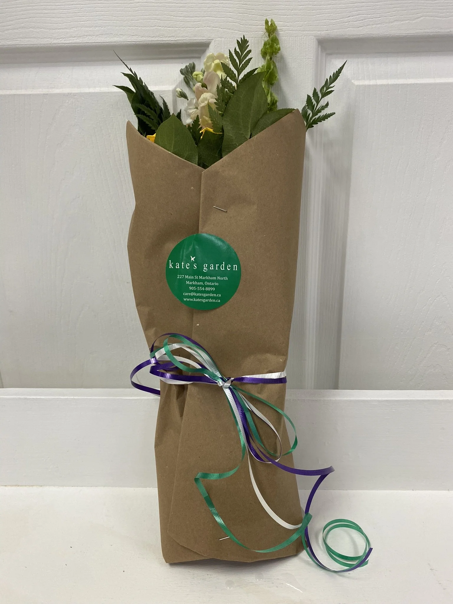 Bouquet size of your choice (Includes floral food and Arrive Alive Hydration system for long lasting bouquets, as well as Standard Floral Wrapping with Ribbons) $40, $50, or $60 plus tax