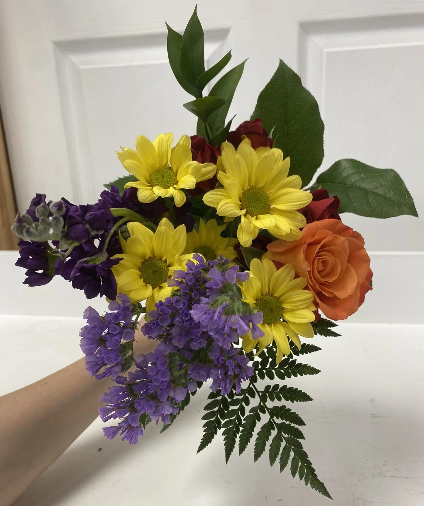 A Posey of 5 Blooms in Standard Flowers and 3 Stems of Foliage.